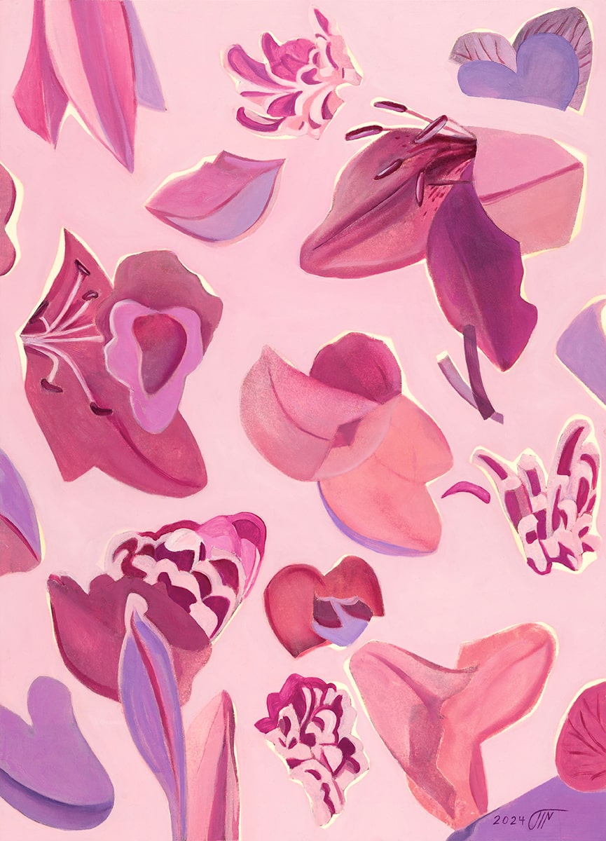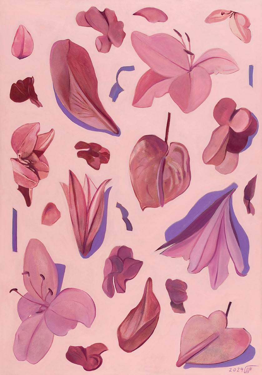 Change is a function of time. All entities, once beautiful and flawless, will eventually fade into nothing and manifestations of time will appear and grow on their bodies. They emerge ever more clearly on bodies filled with the force of life. Flowers perfectly resemble such transformations, as they quickly diminish in front of our eyes. They simultaneously portray ideas such as life, death, utopia, and dystopia, implying notions like the cherishing true beauty, passion, living in the moment, repetition and the ephemerality of time, loss of things, objects, people and time, and the importance of memory.